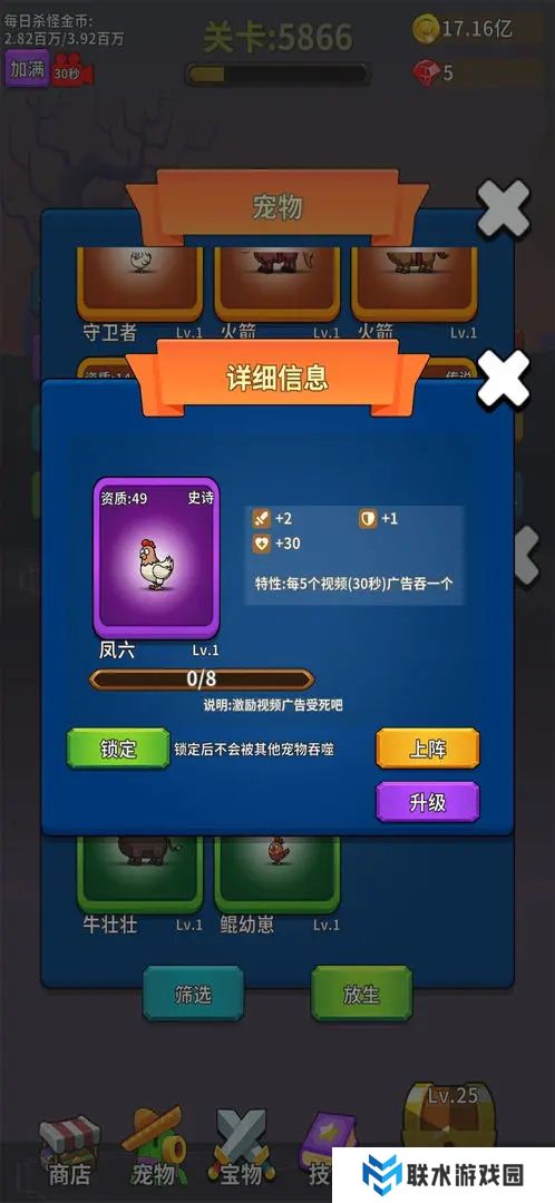5、解锁宠物系统后,优先选择猪宝宝。宠物的特性为白色,刷取时无需上阵。