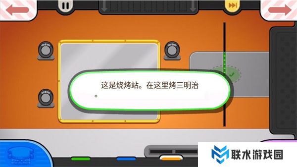 4. 游戏开始时会有剧情介绍,点击右下角的跳过按钮可以跳过,接着你会看到烧烤站,可以在这里烤制三明治。