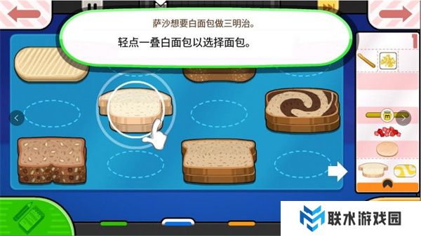 6. 顾客萨沙想要一个白面包三明治,点击屏幕上的白面包来开始。