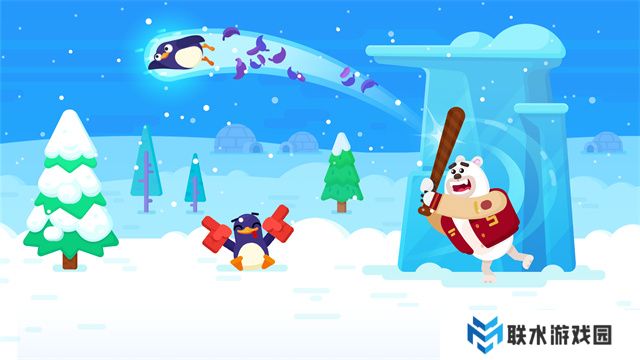 2、当企鹅即将掉落时,迅速点击屏幕,北极熊将用棒球棍将企鹅弹飞;