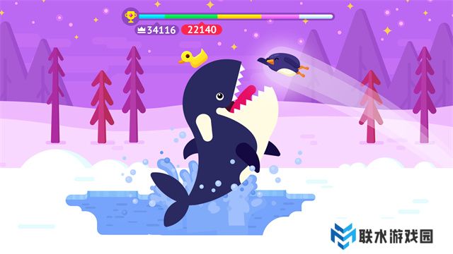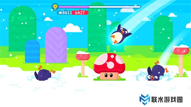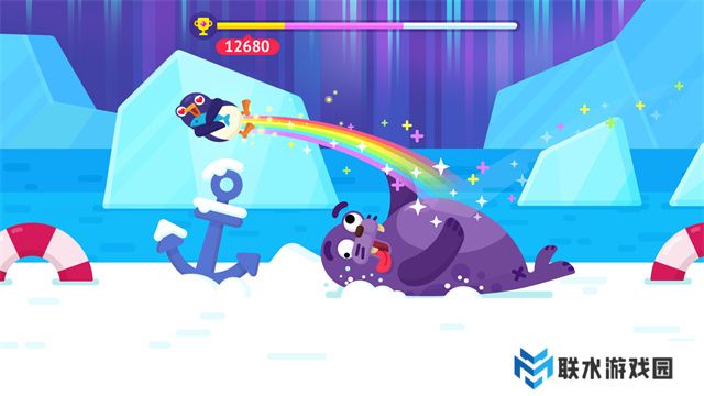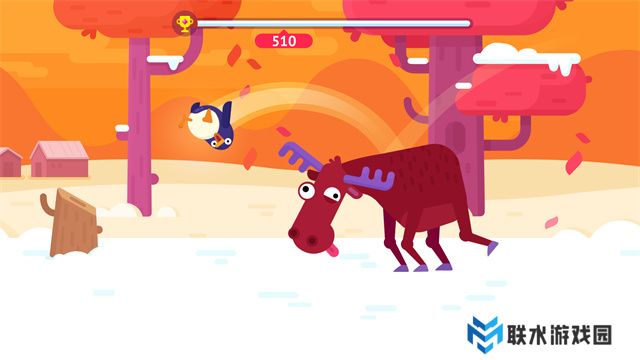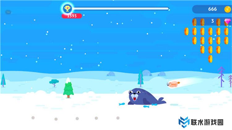 4、当企鹅落地并撞击到海豹时,再次点击屏幕,海豹将帮助企鹅继续弹飞;