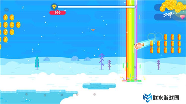 3、在企鹅飞行的过程中,尽量收集空中的金币;
