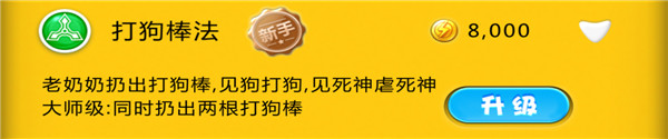 5、打狗棒法(8000):老奶奶扔出打狗棒,见狗打狗,见死神虐死神。