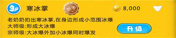 2、寒冰掌(8000):老奶奶拍出寒冰掌,在身边形成小范围冰爆。