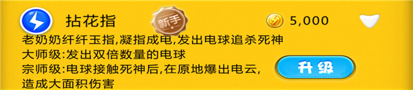 3、拈花指(5000):老奶奶纤纤玉指,凝指成电,发出电球追杀死神。