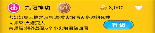 4、九阳神功(8000):老奶奶集天地之阳气,凝发火炮消灭身边的死神。