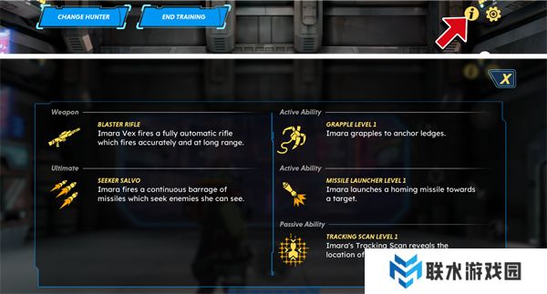 在对局过程中,你可以点击右上角的(i)信息按钮查看猎手的技能。