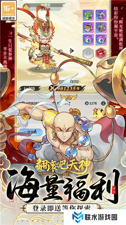 翻滚吧天神带你进入一个神话冒险的全新天地,结合了经典的西游故事和独特的放置玩法,让你既能体验紧张刺激的战斗,又能享受轻松的成长过程。你可以自由选择西游中的传奇人物来培养他们,并依据不同的挑战搭配最强阵容。不论你是战斗狂人还是休闲玩家,这款游戏都能符合你的需求一一在线离线都能自动积累资源,轻松提升角色实力。