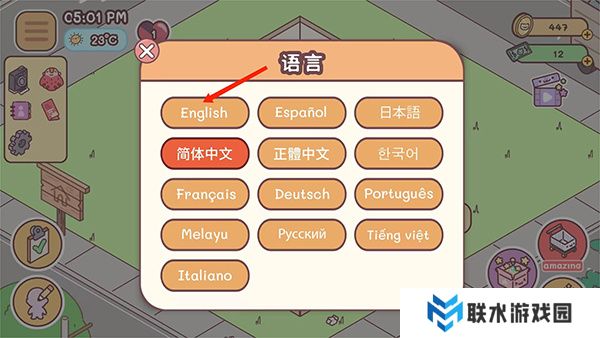2、在设置界面中,找到并点击语言选项下的【简体中文】。