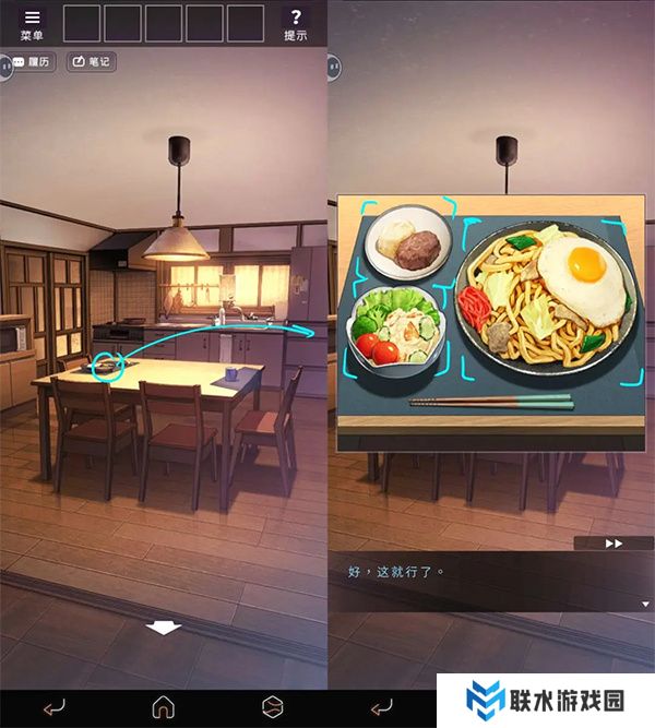 将炒面和凉菜放在桌面上吃完后,点击左上角的牡丹饼,给幽灵即可过关。