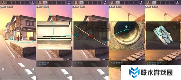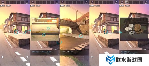 与幽灵对话后,来到街道,和商店老板对话,调查商店门口,点击草和猫爪印。随后来到河川与幽灵互动。回到商店门口与弟弟对话,得到弟弟的零花钱。