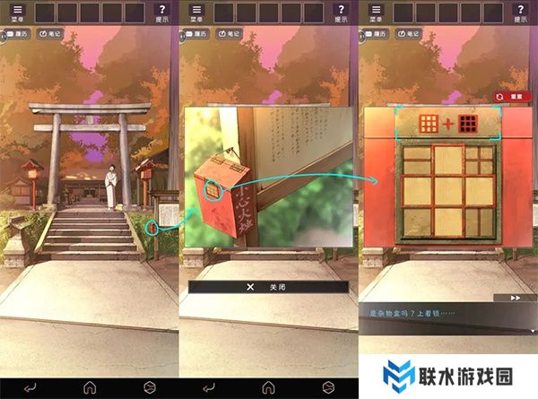 根据提示检查左右两侧的灯笼,右侧灯笼内可取得蜡烛。然后,按照灯笼的图案叠加解开小箱子。