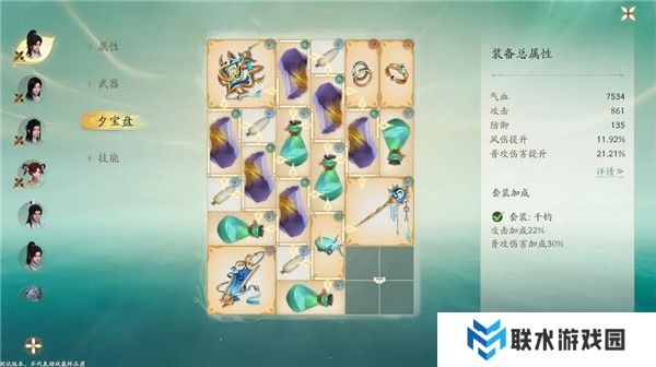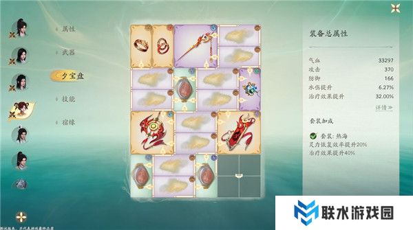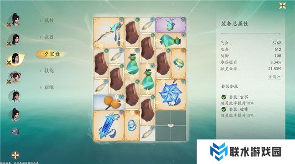 初期设置:主堆水伤和破灵伤害。开始时可以随便搭配,后期可选择更适合的套装。