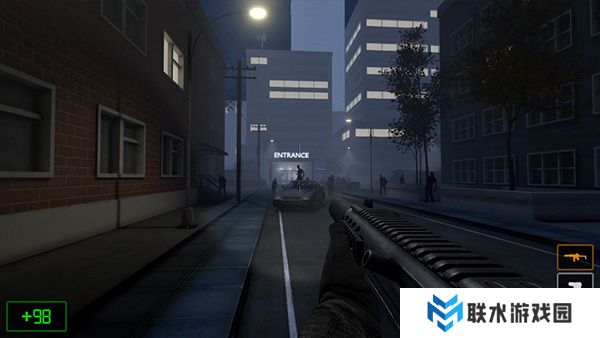 游戏操作简单,左侧控制角色移动,右侧进行射击、换弹和瞄准。但面对成群结队的丧尸时,玩家必须依赖环境中的掩体来保护自己。每当你清理掉一层楼的丧尸时,游戏节奏会瞬间变得更加紧张,特别是当你进入开阔的区域时,丧尸的数量骤增,你需要更加小心谨慎。