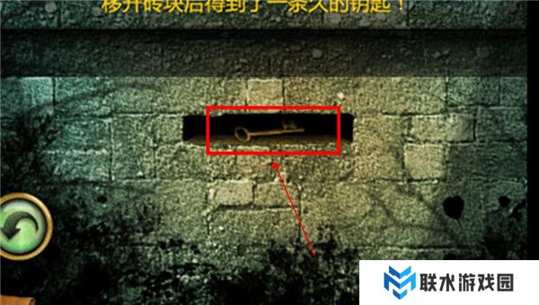 3、点击这块砖块把它移开,你就能找到一把大门钥匙。