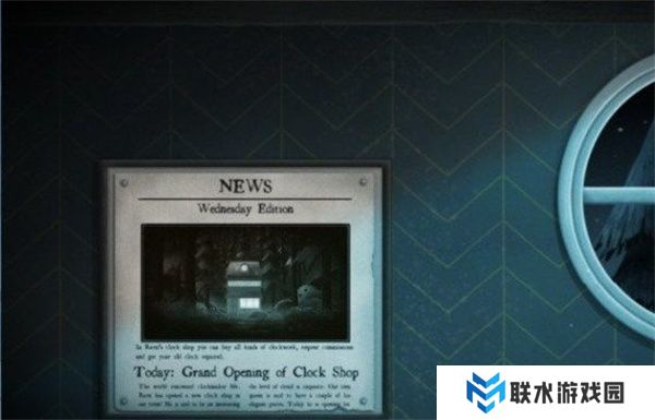 在钟表店的顶层发现一条新闻报道,包含信息“星期三(Wednesday)”。