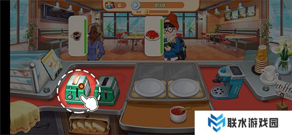 1. 进入游戏后,客人会前来购买食物,你需要根据他们的需求来制作美食。例如,如果客人想要一份番茄酱的面包。