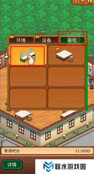 4.点击【配置】选择合适的【座位】,并设置喜欢的款式、摆放位置和方向即可开业。