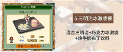 配方:混合三明治+巧克力冰激凌+热牛奶布丁饮料