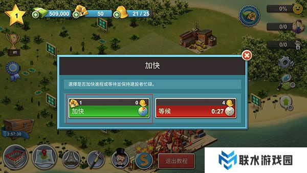 6. 如果觉得建造进度太慢,可以点击小房子,再点击“加快”,这时会消耗一个金条。