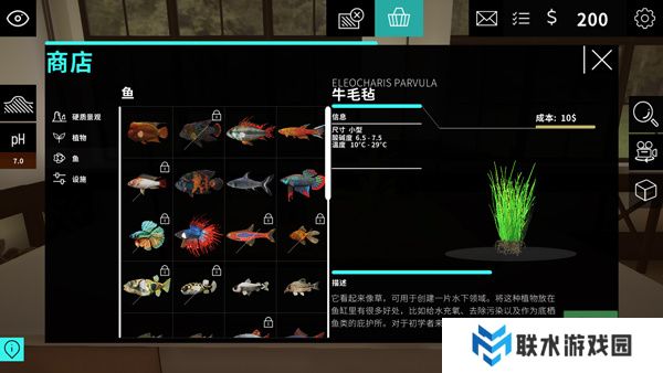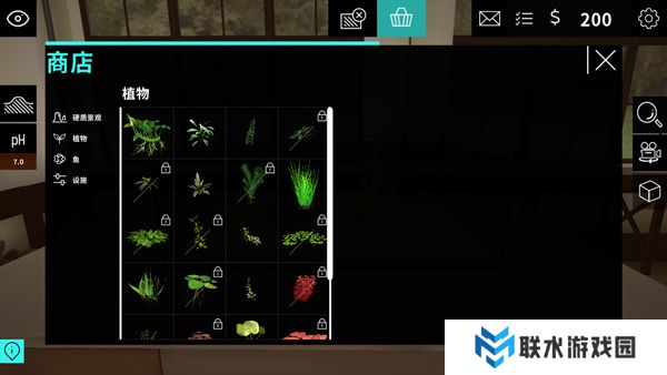 5. 点击右上角的商店按钮,玩家可以在商店中购买各种水族箱装饰、植物等物品。