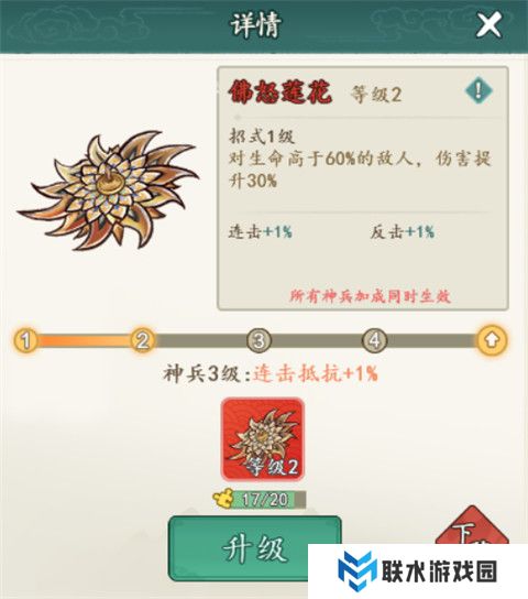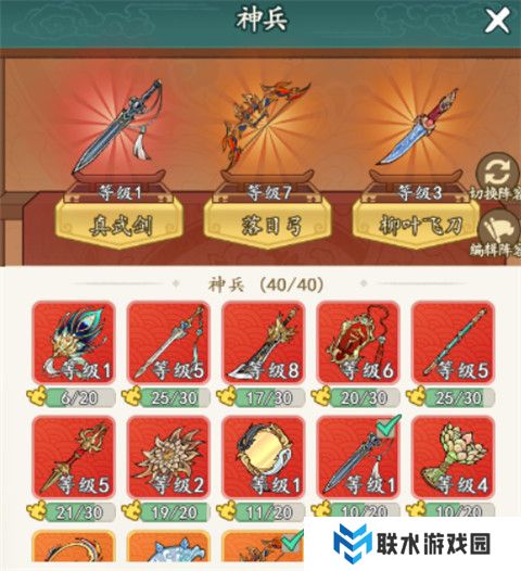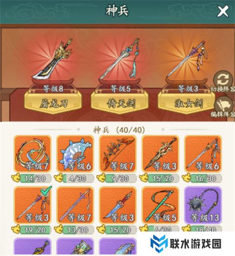 1、最多可装备3件神兵,合理搭配能大幅提升战力。