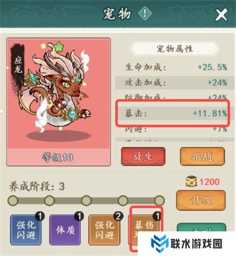 宠物:选与自身属性匹配,暴击/连击效果最佳。
