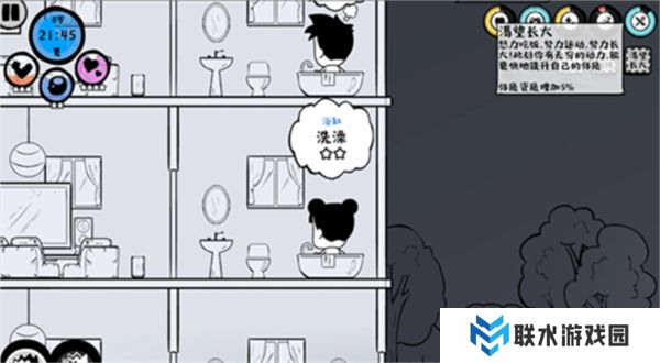 在遇到第一个关键选择时,游戏问我对作业的态度是怎样的,是认真痛苦地学习,还是该玩就玩。我选择了“玩玩玩”,于是获得了“享乐主义”Buff。这个Buff的作用是在娱乐值较高时,心情值会以2级的增长速度增加。