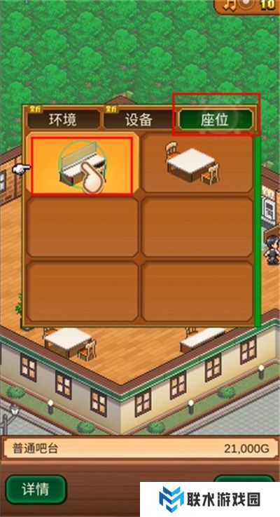 5. 选择“座位”,挑选你喜欢的款式,并设置好摆放位置和方向,准备好后就可以开业了。