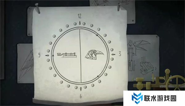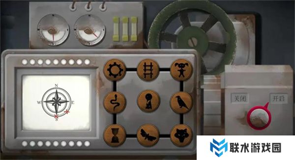 上楼后,点击中央的图纸,屏幕会显示一个类似大门的锁图案,左侧是电报机,右侧是那只鸟,周围有旋转的箭头。此时玩家二需要在鸟的笼子上输入名字KOL,并观察鸟的眼睛亮灭顺序:暗、亮、暗、亮、亮、亮、暗、暗、亮、亮、亮、暗。