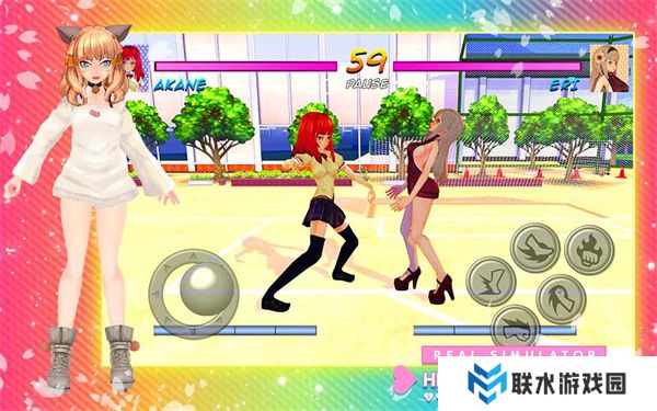 高中女生战斗模拟器是一款充满趣味的校园动作格斗类手游。游戏的核心玩法围绕高中女生角色展开,玩家可以选择多样化的角色,每个角色都有独特的外观和专属的格斗动作,玩家可以根据个人喜好挑选自己钟爱的角色,利用她们的力量在校园中展开一场场激烈的战斗。玩家将面对一系列强大的对手,从学校里的其他女生到可爱的小学妹,每一次战斗都充满挑战。战胜对手后,你将逐渐接近校园的霸主地位,享受来自学校的高级待遇。此外,游戏不仅仅是单纯的战斗,还融入了真实的高中生活元素,玩家可以在战斗的同时,感受到校园友情、青春与热血。