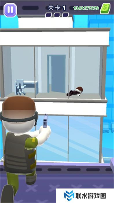 2、登上直升机后,你将身处俯瞰都市的高空平台,使命在肩,必须精准射击并消灭大楼内的犯罪分子。