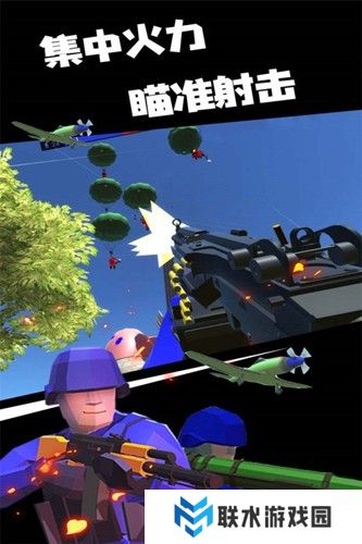 3.直升机:血量一般,可坐2人,速度极快,无限的弹药也对敌军进行地毯式轰击