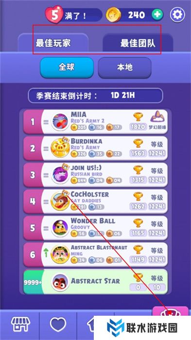 8、游戏内设有排行榜,分别展示最佳玩家及卓越团队的荣誉排名。