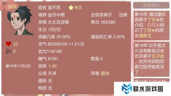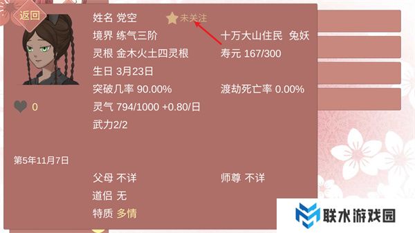 关注同道,共步长生—可主动锁定并关注特定角色,与他们共度修行岁月,结下深厚情谊。