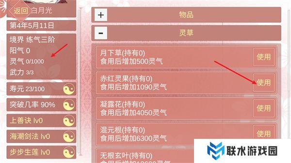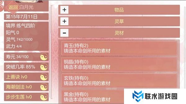 道具收集,灵气积累—在背包中查看自身所持有的珍稀灵材,如蕴含浓郁灵气的仙草,服用后可迅速提升修为。