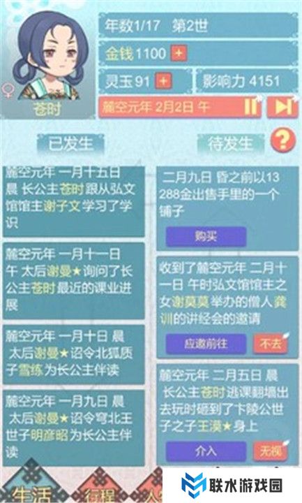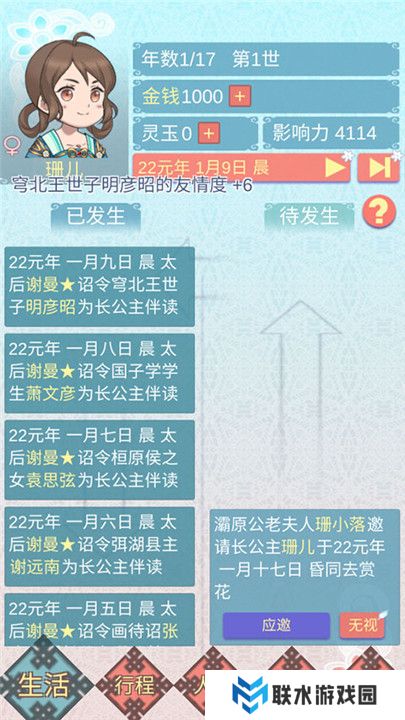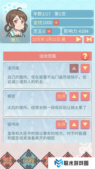 5、下方菜单可安排日常事务,如学习、社交、宫廷管理等,合理规划时间,提升成长效率。