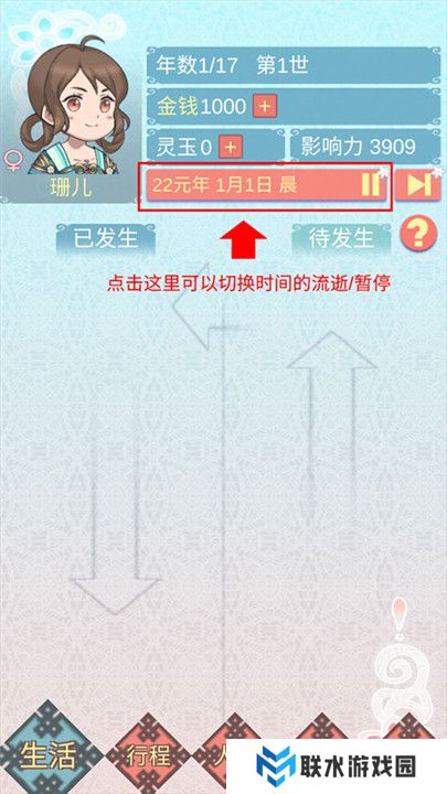3、左侧可选择让时间流动或暂停,右侧有自动推进功能,可设定关键事件自动暂停,避免错过重要剧情。