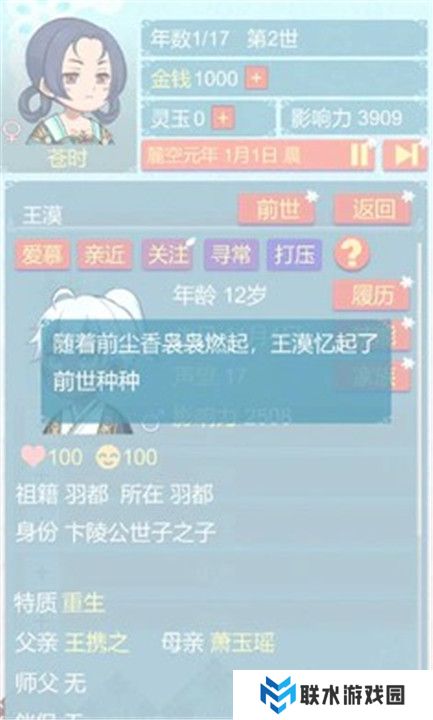 3、谋略:此项技能较为特殊,第一世主要依赖母后培养,建议减少其他社交,仅亲近母后,提高教学触发率。第二世可介入弟弟相关事件,解锁更多学习途径。