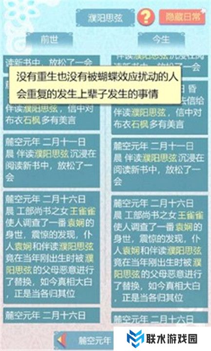 4、左侧为已发生的剧情,右侧是待触发的随机事件,每个选项都会影响未来发展,谨慎决策至关重要。