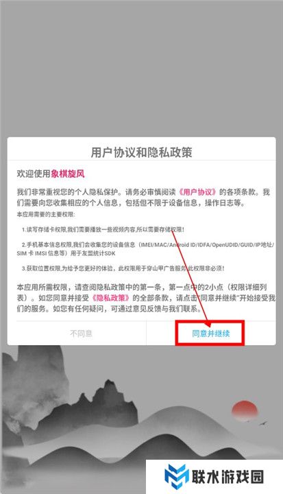 1、启动游戏,记得先阅读并同意相关协议哦。