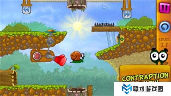 3. 当蜗牛走到旋转盘时,点击旋转盘下方的红色按钮,旋转盘会开始转动,蜗牛也会随之转过来。