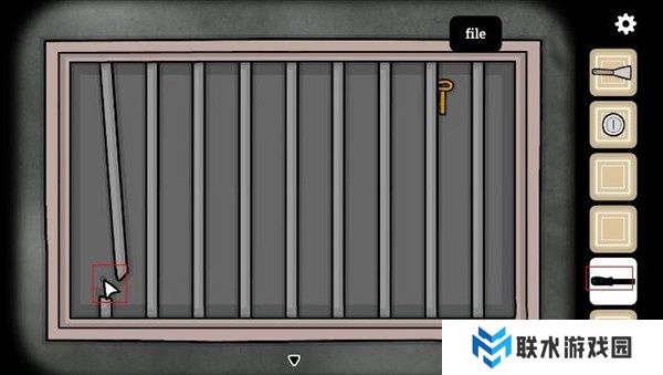 9. 回到放置箱子的地方,查看排水管,使用锉刀拆下断裂的水管,得到一根断裂水管和钥匙。