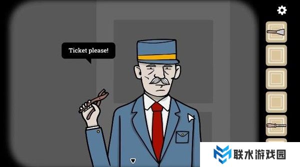 8. 点击列车员,他会提示我们需要车票。接着点击列车员右边的口袋,得到一枚硬币。