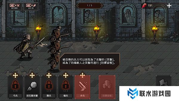 1、打开国王之血防御后,立即步入教学试炼,依循神秘指引逐步洞悉玩法;长按下方步兵符牌即可召唤勇士,持续按压时最多集结三员兵将。