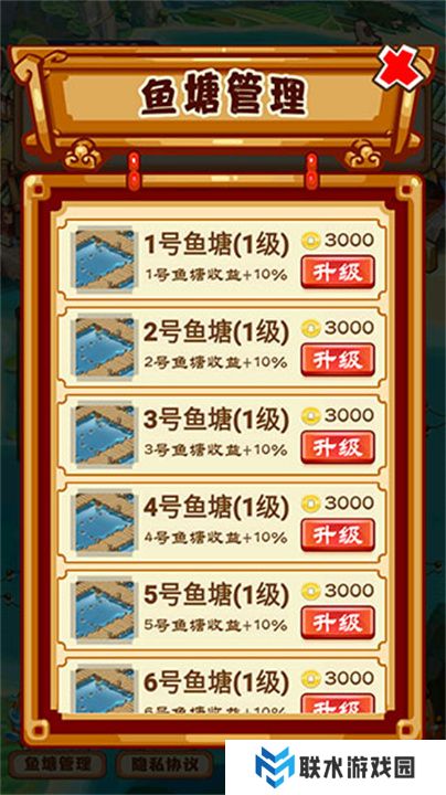 进入游戏后,你将看到六个待开发的鱼塘,每个池塘都是独立的,你可以在其中选择各种鱼苗进行养殖。在玩法上,游戏没有复杂的操作,主要是通过等待鱼苗的成长来进行收获,轻松又不失乐趣。