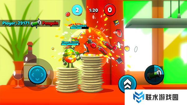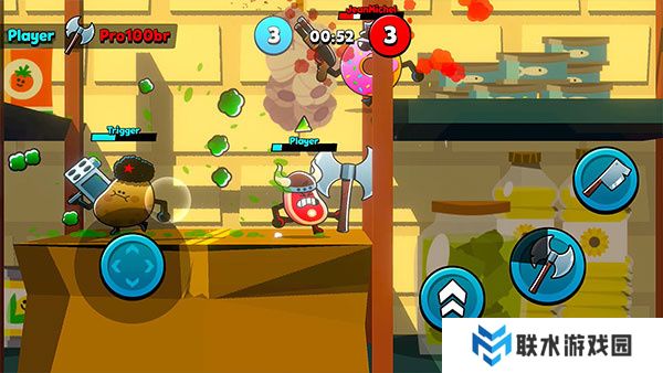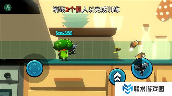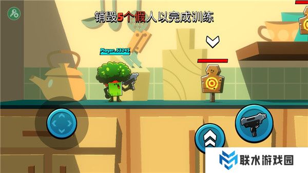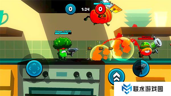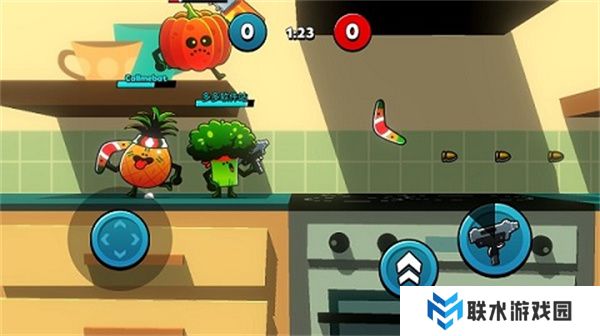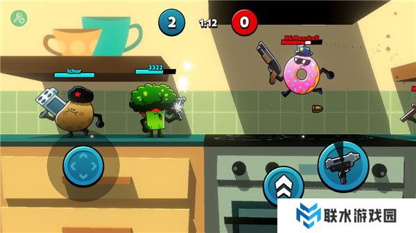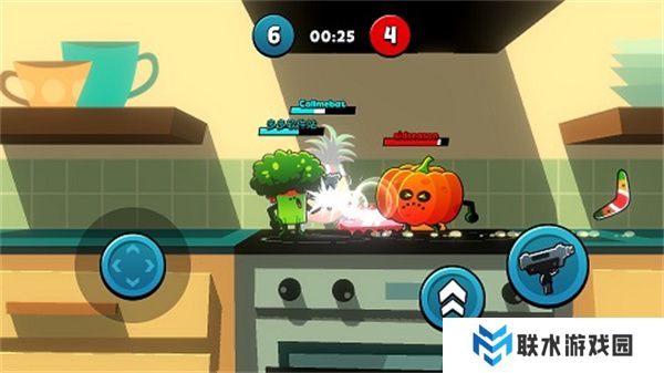 4. 游戏操作简单直观,虚拟摇杆控制移动,右侧按钮用于跳跃和射击。你还可以利用厨房环境来设计致命攻击,同时每场战斗结束后,你将解锁新的技能,进一步提升战力。