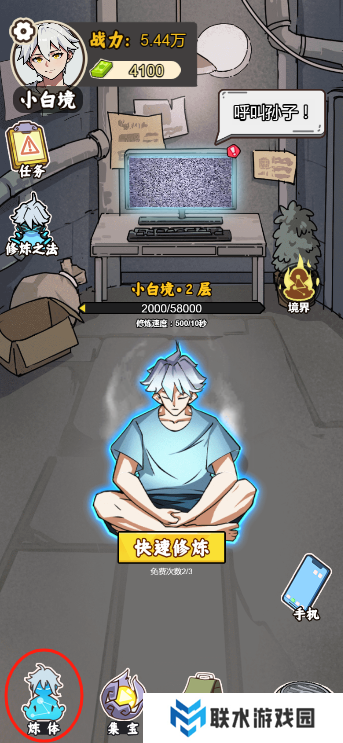 修炼:通过点击修炼按钮,玩家可以在达到一定等级时进行境界突破。 (通关1-3章副本后,解锁废弃灵药堆、魔封电饭煲、修炼头盔等修炼法宝,使用这些物品能提升修炼速度。提升修炼境界等级后,参与悬赏活动将获得更多丰厚奖励!)