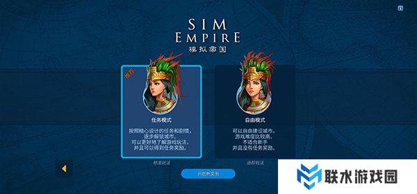 2. 选择好文明后,接下来要选择任务模式。游戏提供了两种模式:任务模式和自由模式。对于新手玩家来说,建议先选择任务模式,然后点击“开始新的文明”进入游戏。
