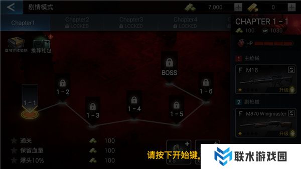 2. 选择剧情模式,然后点击1-1章节。